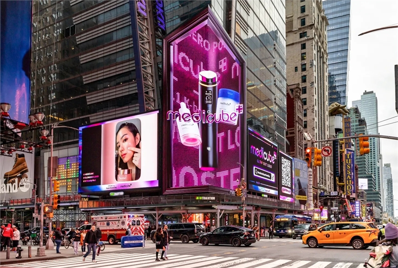 ‘Glow out loud(당당하게 빛나라)’를 슬로건으로 한 광고 영상이 타임스퀘어 전광판 5곳과 뉴욕 지하철 약 500개 구좌에 송출됐다. ‘에이지알 부스터 프로’, ‘PDRN 핑크 펩타이드 앰플’, ‘제로 모공 패드’ 등 대표 제품을 중심으로 메디큐브의 ‘광채 피부’ 이미지를 강조한 영상이 현지 소비자의 눈길을 끌었다.