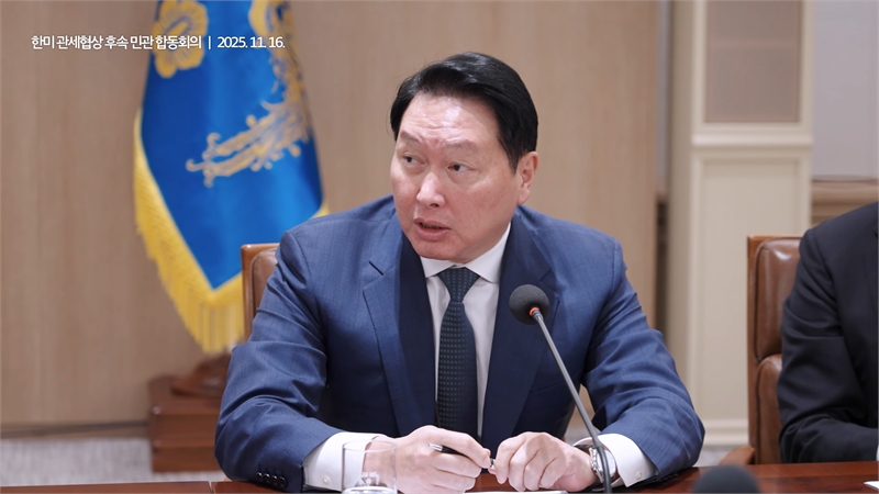 최태원 SK그룹 회장은 “대통령님의 신중하고 결단력 있는 리더십으로 관세 협상을 잘 이끌어 주신 데 대해 감사드립니다”라고 말했다. [사진 = 이재명 유튜브]