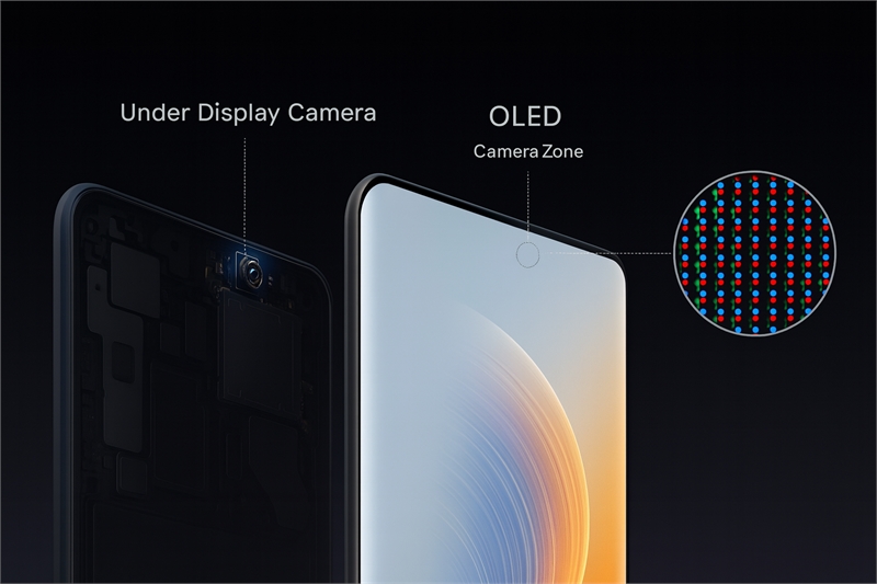 카메라를 디스플레이 아래에 완전히 숨기는 구조를 통해 화면 위에 카메라 홀이 보이지 않는 풀스크린을 구현한 것이 특징이다.
