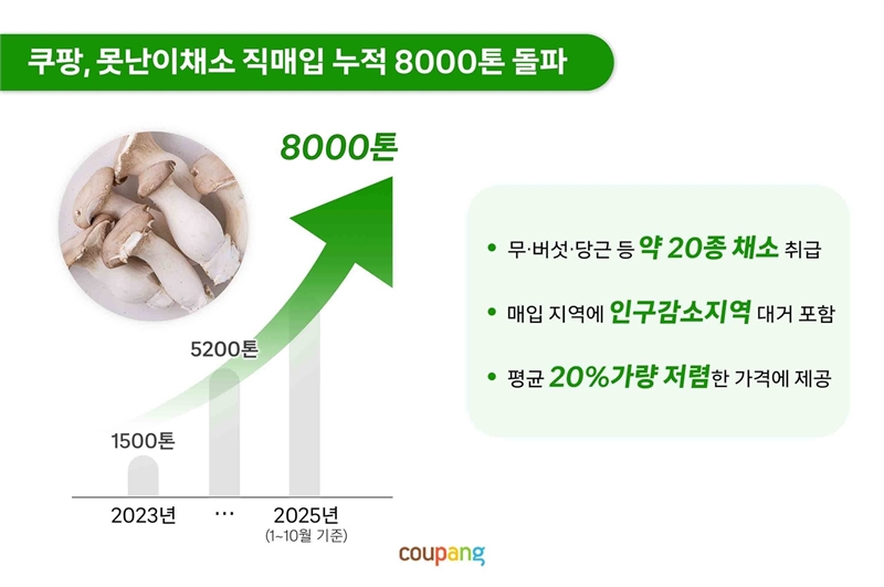 쿠팡은 못난이 채소 직매입을 본격화한 2023년 1500톤을 시작으로 2024년 3700톤, 2025년(1~10월) 2800톤 이상을 매입했다.