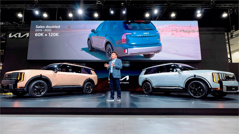 기아는 텔루라이드 하이브리드·X-Pro를 포함해 EV9·쏘렌토·카니발 등 23대의 차량을 전시했다. 또한 OTA 기반 FoD 테마 스킨과 V2H 기술을 체험할 수 있는 별도 전시존을 마련해 북미 고객들이 기아의 차별화된 커넥티비티·전동화 기술을 직접 경험할 수 있도록 했다.
