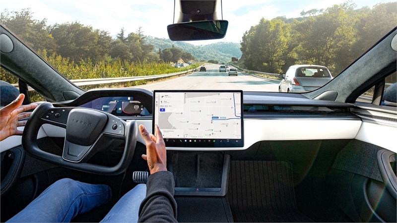 테슬라 차량에서 FSD(완전자율주행) 기능이 작동 중이다. [사진 = 테슬라]