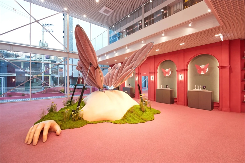 매장 입구에는 핑크 페어리 오브제가 설치돼 ‘피부가 다시 날개를 얻는 순간’이라는 브랜드 메시지를 시각적으로 표현했으며, 내부 동선도 해당 콘셉트에 맞춰 설계됐다.