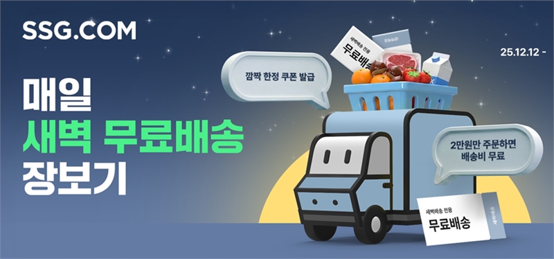 SSG닷컴은 오는 19일까지 8일간 새벽배송 상품을 2만원 이상 구매하면 사용할 수 있는 무료배송 쿠폰을 매일 1장씩 제공한다.